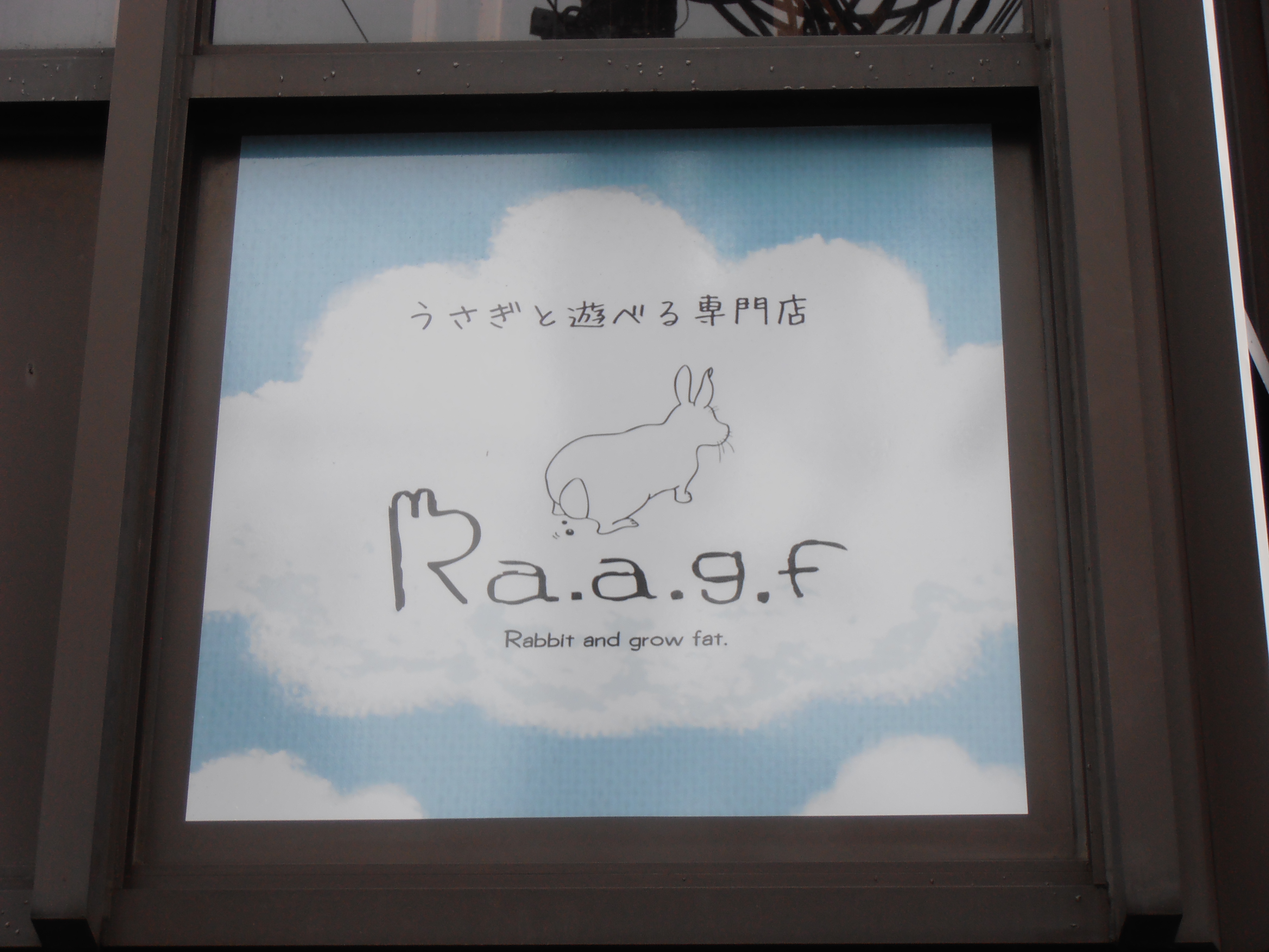 About a fortnight ago I went to a cat cafe in Shibuya. It was fun but slightly disappointing that so many of the cats were asleep or just not doing much. Of course, they were cats, what was I expecting? I suppose disdain for the humans so obviously delighted to see them would be par for the course. However, in my efforts to find a cat cafe I also discovered that there were such things as rabbit cafes, and they appealed to me more. There are two in Tokyo; one in Harajuku and one in Jiyugaoka, run by the same people, and so both have the same name: Rabbit And Grow Fat. A stroke of genius, made even more brilliant by the decision to go by the acronym Ra.a.g.f. which can only be pronounced as some kind of roar, and perfected in the cafe’s logo, complete with cartoon rabbit droppings: