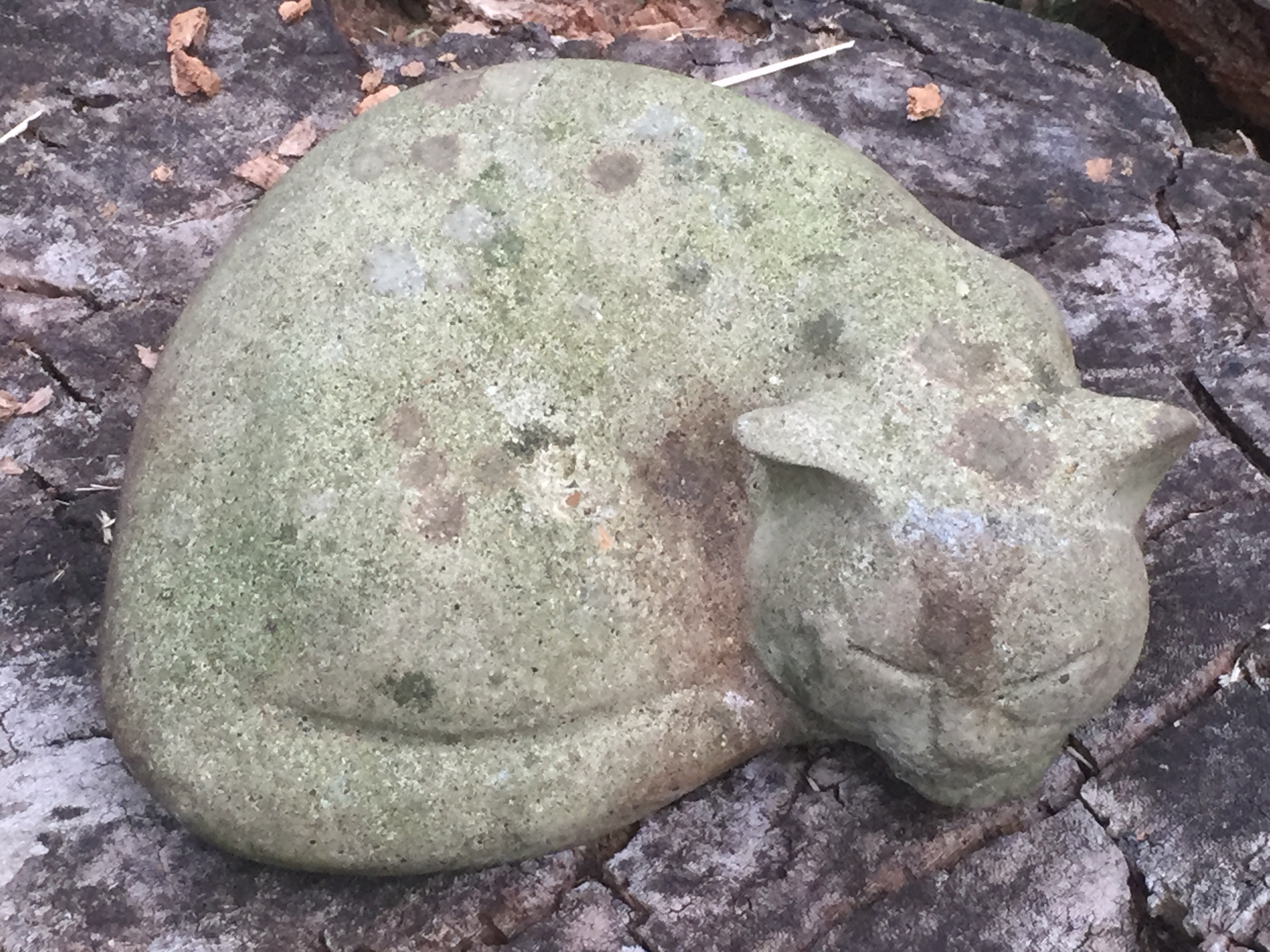 So we met at the mulberry tree in the garden at 4pm, went for a walk through Richmond Park and shared a pot of tea at a nursery. We walked back along the Thames and joined the Sisters for the evening Eucharist. After supper we ended up in the garden with one of the Sisters; first, we went to the kitchen garden so H could pick up some cuttings she had left there. Then it was down into the old orchard in search of a small stone cat I had seen every year. Neither the Sister nor H had ever seen it before, which produced in me an irrational fear that it would no longer be there and I would seem a bit loopy. But it was, much to the Sister’s amazement. It was duly rescued from the undergrowth and transported to the top of the garden, from where it will be moved eventually to their new home. Finally we arrived at the old mulberry tree and finding some berries ripe we helped ourselves to a few. It was only later that I realised we had gone ’round and round the mulberry bush’ in search of ripe berries. The faithful old tree has been propped up for years, still producing fruit from the good soil.
